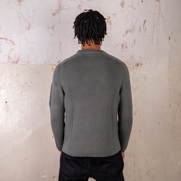 A knitted crewneck sweater with a clean ribbed texture. Designed with ribbed trims at the collar, cuffs, and hem, it ensures a comfortable fit while maintaining a refined silhouette. Finished with the signature lens detail on the sleeve pocket, this piece combines everyday versatility with the distinctive character of C.P. Company.
